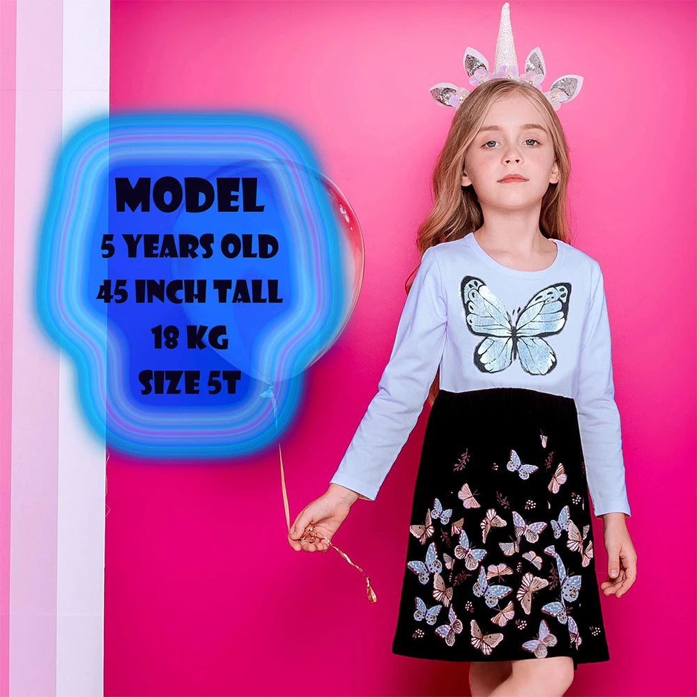 DXTON Butterflies A-line Kids Girls Dresses Pastorale Style Children Home Party Costumes Elegant Girls Casaul Outside Clothing