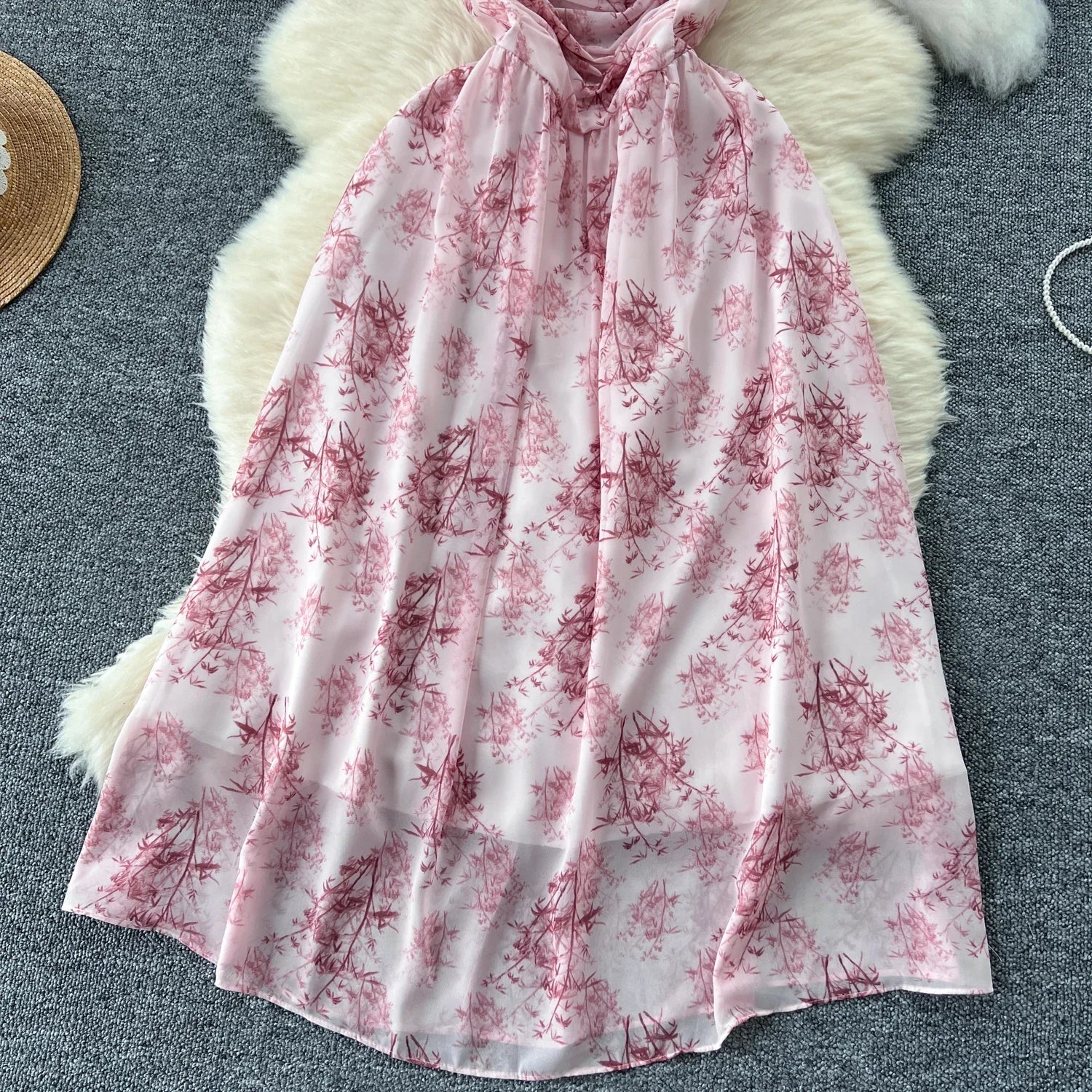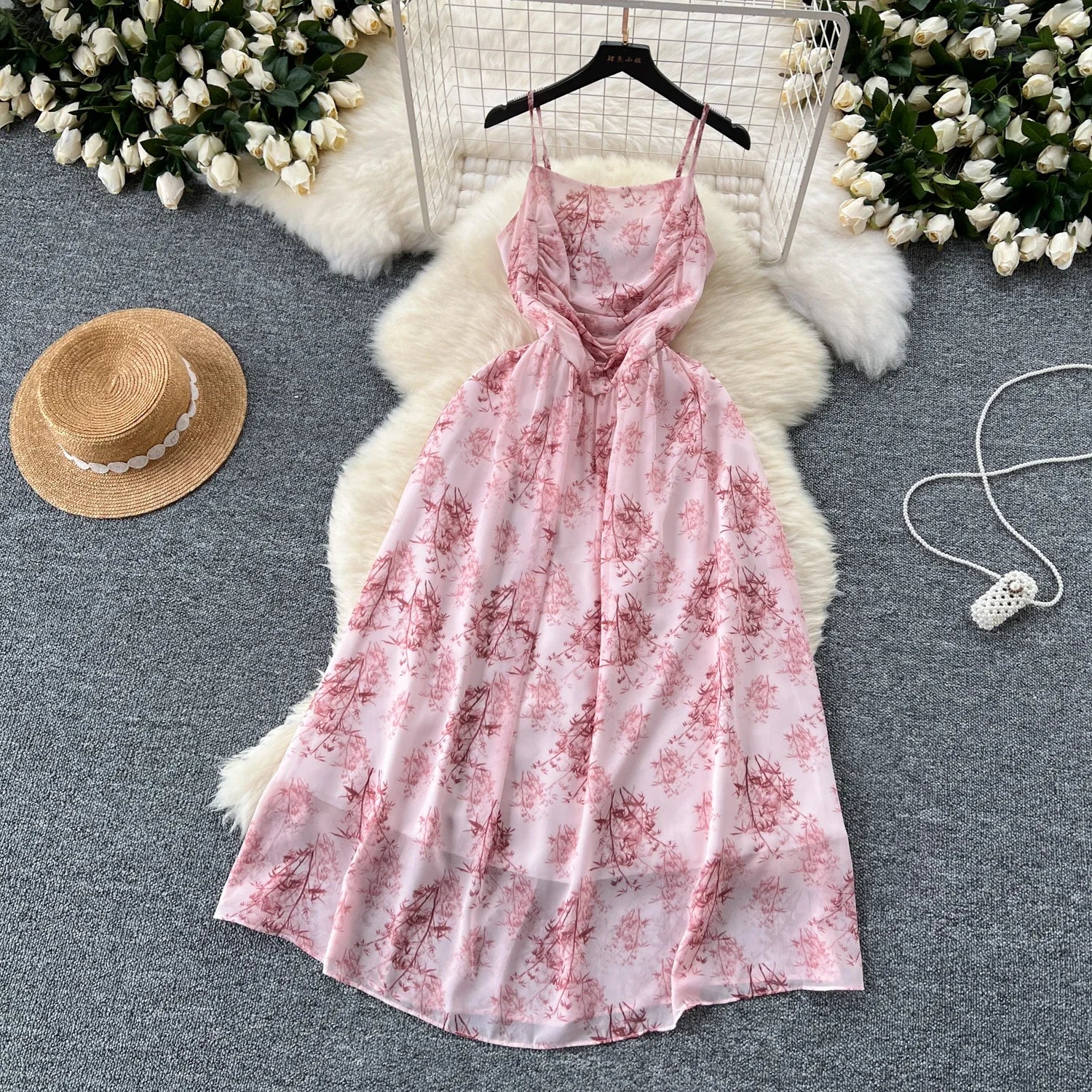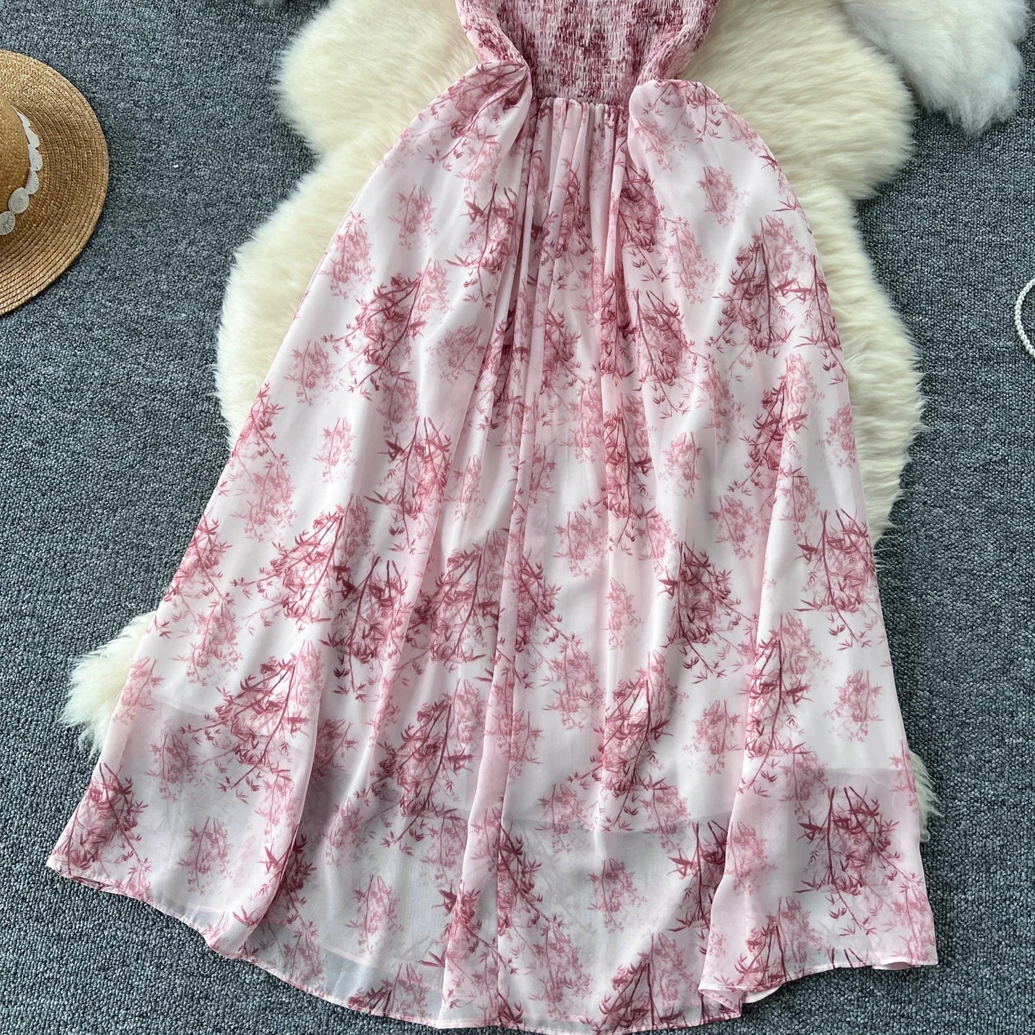 New Korean Fashion Rose Flower Print Romantic Retro Party Dress Summer Elastic High Waist Vacation Long Dress Beach Vestido